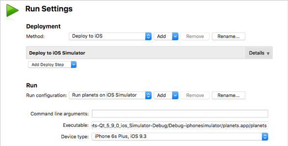 When you run the project, Qt Creator uses Xcode to deploy the application to the device.