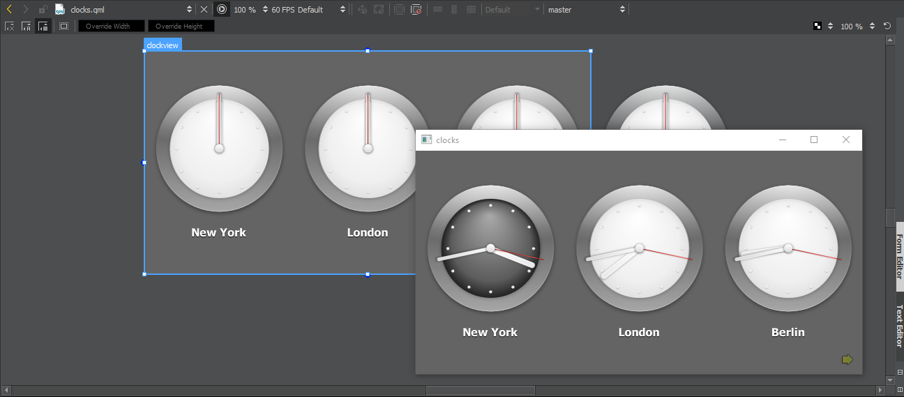 To preview any QML file that belongs to the project, right-click the project name in the Projects view, and select Preview file .