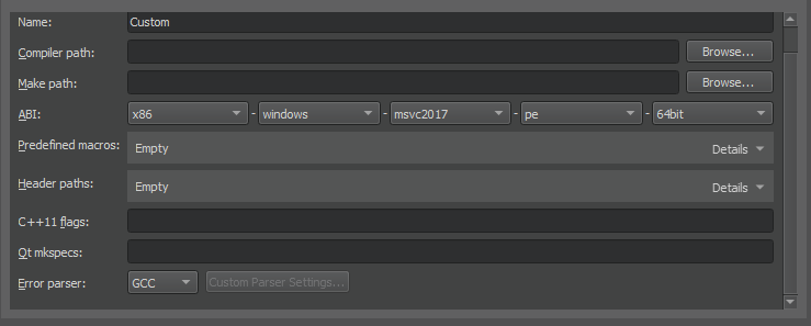 Qt is supported on a variety of 32-bit and 64-bit platforms, and can usually be built on each platform with GCC, a vendor-supplied compiler, or a third party compiler. In Qt Creator, a kit specifies the compiler and other necessary tools for building an application for and running it on a particular platform.
