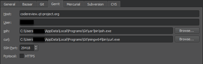 The Remote field lists the remotes of the current repository that are detected as Gerrit servers. Select 工具 > Options > Version Control > Gerrit to specify a fallback connection to a Gerrit server over SSH. The Gerrit REST interface and the curl tool are used for HTTP connections.