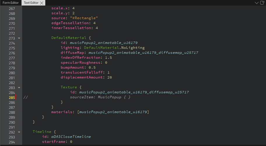 Next, recreate the animations for the QML stream according to the original project.